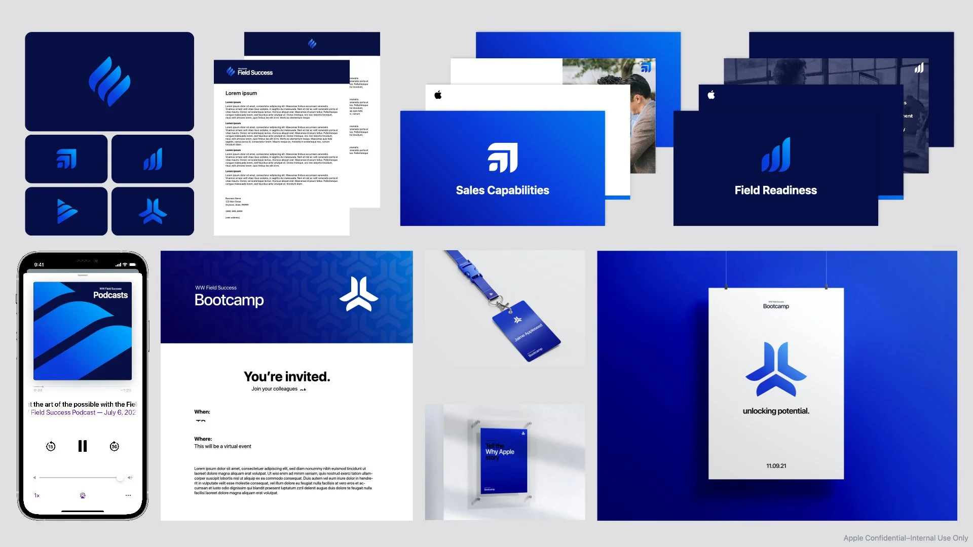 Designed the umbrella branding for the WW Field Success team, creating a cohesive identity for the team as well as its four initiatives and programs. Focused on a clean, professional, and recognizable style tailored for sales audiences. The branding was applied across newsletters, Keynotes, playbooks, podcasts, and bootcamps to ensure consistency and engagement.